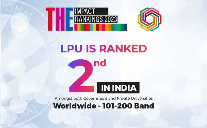 LPU has been ranked among top 3 universities of India by THE Impact Ranking 2023.
