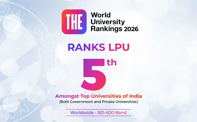LPU is ranked 5th amongst top Universities of India (both Govt. & Pvt.) by The World University Ranking 2026.